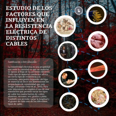Justificación o Introducción La resistividad eléctrica es una propiedad que mide la cantidad en que un material se opone al flujo de la corriente eléctrica. Todo tipo de material conductor ofrece un cierto tipo de resistencia a la corriente, esta podrá depender del tipo de material es decir sus dimensiones las propiedades de resistividad que este tenga”, (Alvarado Ortiz et al., 2015). Para este laboratorio se empleó el uso de una simulación que permite variar los tipos de cable los cuales fueron de: cobre, aluminio, nicromo, oro, grafito y plata. También nos permite variar la longitud y el grosor de cada uno de los diferentes tipos de cable.