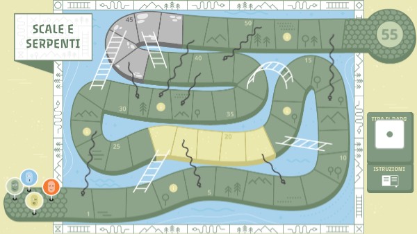 I GIOCATORI INIZIANO DALLA CASELLA 0 E TIRANO IL DADO A TURNO, MUOVENDOSI IN AVANTI.- SE FINISCONO SU UNA SCALA, SALGONO. - SE FINISCONO SU UN SERPENTE, SCENDONO. REGOLE SPECIALI: RISPONDENDO CORRETTAMENTE ALLE DOMANDE IL GIOCATORE VA DUE CASELLE AVANTI, ALTRIMENTI VA INDIETRO DI DUE CASELLE!