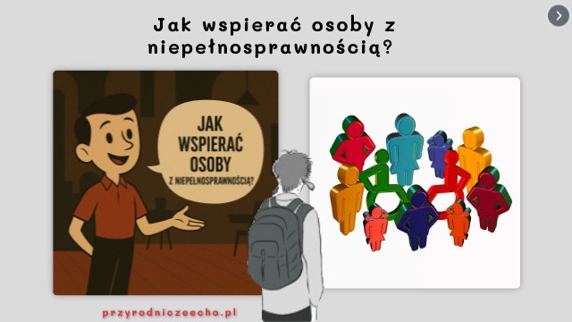 Jak można pomagać ludziom z niepełnosprawnościami? 🏫 Rozwiązania w szkole i społeczeństwie dostosowanie budynków (podjazdy, windy, niskie przyciski, toalety dla osób na wózkach), materiały edukacyjne w różnych formach (audiobooki, napisy, alfabet Braille’a), tłumacze języka migowego, proste formularze, jasny język, elastyczność na lekcjach (więcej czasu, dostosowane zadania).