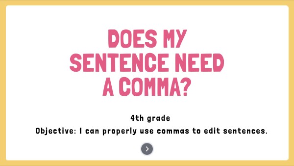 4th grade Objective: I can properly use commas to edit sentences.