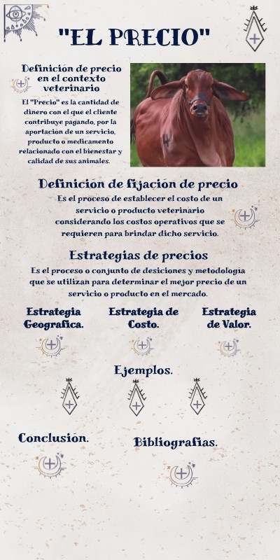 El "Precio" es la cantidad de dinero con el que el cliente contribuye pagando, por la aportación de un servicio, producto o medicamento relacionado con el bienestar y calidad de sus animales.