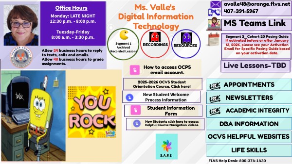 Segment 1 is incomplete? Last day to submit assignments is on December 16, 2024 Please reach out to Ms. Valle for support. We will finish strong!