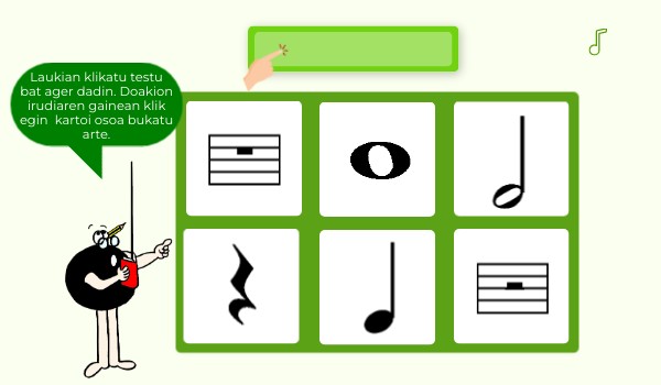 Laukian klikatu testu bat ager dadin. Doakion irudiaren gainean klik egin kartoi osoa bukatu arte.