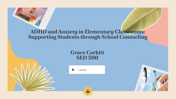 Why I chose this topic: These disorders are often misunderstood or misinterpreted as “bad behavior” or “laziness,” but in reality, they are medical and psychological conditions that require support. School counselors are positioned to provide that support to both students and teachers. I also struggled with anxiety in elementary school. It was so hard when I did not know what was happening to me, and when adults around me weren’t educated on it either. I think the more educated adults are on behavioral and emotional issues students face in school, the better everyone will be.