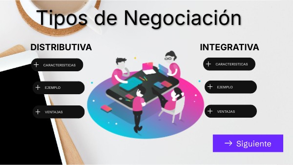 - Conocida como "ganar-ganar". - Las partes colaboran para encontrar soluciones mutuamente beneficiosas. - Se busca expandir los recursos o crear valor. - Se enfoca en los intereses subyacentes de cada parte.