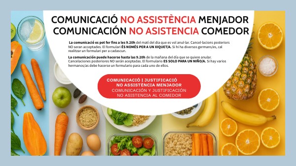 COMUNICACIÓ I JUSTIFICACIÓ NO ASSISTÈNCIA MENJADORCOMUNICACIÓN Y JUSTIFICACIÓN NO ASISTENCIA AL COMEDOR