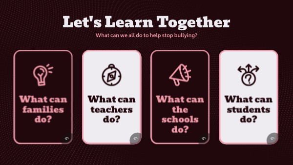 Be kind and respectful to their peers. Report to an adult immediately if they are being bullied.