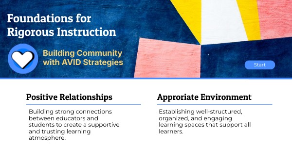 Practices such as personalized greetings, relational capacity building activities, and celebrations are consistently observed. Students are consistently provided with opportunities to share both strengths and vulnerabilities while getting to know one another and engaging in content. and they have developed a strong sense of community and belonging.