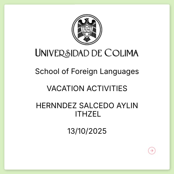 School of Foreign Languages VACATION ACTIVITIES HERNNDEZ SALCEDO AYLIN ITHZEL 13/10/2025