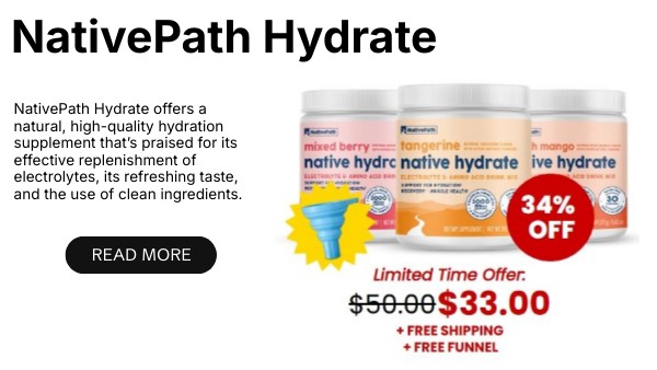 NativePath Hydrate offers a natural, high-quality hydration supplement that’s praised for its effective replenishment of electrolytes, its refreshing taste, and the use of clean ingredients.
