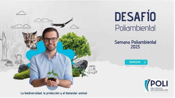 En sus 45 años, el Politécnico Grancolombiano celebra la Semana Poliambiental con el tema “La biodiversidad, la protección y el bienestar animal”.Si eres estudiante, profesor o administrativo de las sedes Bogotá, Medellín o Virtual, prepárate para vivir una aventura virtual que te llevará a través de páramos, montañas y noticias reales del Poli. El objetivo es superar cuatro misiones, cada una con retos y preguntas que pondrán a prueba tus conocimientos y tu compromiso con el planeta. Al finalizar cada misión recibirás un número secreto: anótalo cuidadosamente. Cuando completes las cuatro misiones, introduce el código final en el mismo orden y demuestra que eres un verdadero defensor de la biodiversidad. Ten en cuenta los términos y las condiciones indicadas en la nota web del evento.