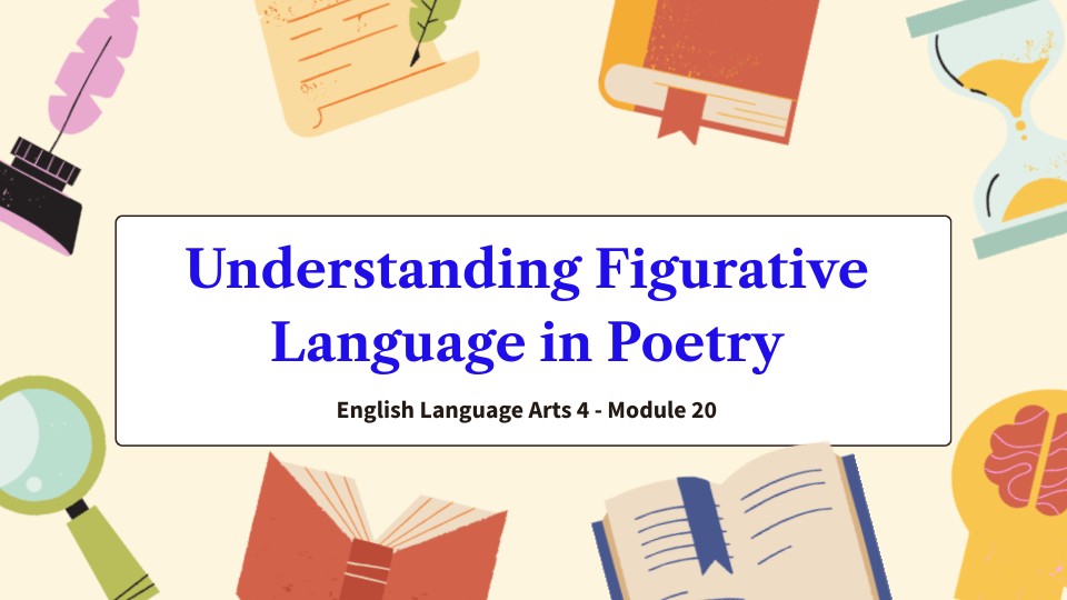 Figurative language is when poets use words or comparisons that go beyond their literal meanings to make their writing more vivid and meaningful. It helps readers see or feel what the poet wants to express. Common types of figurative language include similes and metaphors.