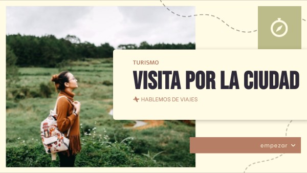1. Tienes 2 minutos para pensar el recorrido (plaza, iglesia, parque, museo, restaurante, etc.). 2. Haz la “visita guiada” hablándome como guía (“A la izquierda puedes ver…”, “Este parque es muy antiguo…”).