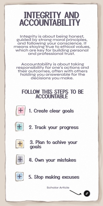 Being accountable means taking full responsibility not only when things go right, but especially when they go wrong. Owning your mistakes shows honesty, maturity, and professionalism. It helps build trust with others and gives you a chance to learn and improve.