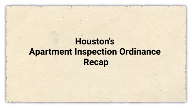 Houston's Apartment Inspection Ordinance Recap