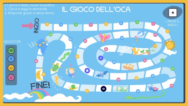 1. Lancia il dado, muovi la pedina 2. Clicca e leggi la domanda 3. Rispondi giusto o resta fermo