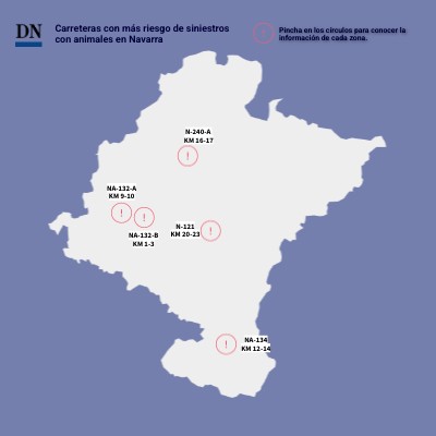 Carreteras con más riesgo de siniestroscon animales en Navarra