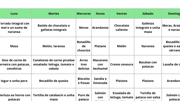 Menú semanal Sara