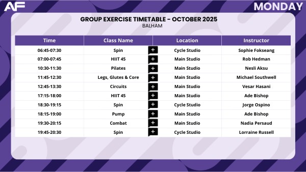 GROUP EXERCISE TIMETABLE - OCTOBER 2025