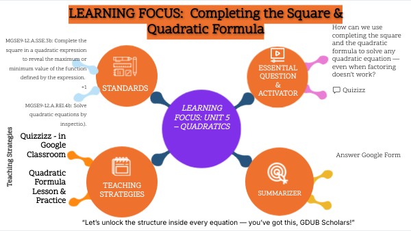 LEARNING FOCUS: Completing the Square & Quadratic Formula