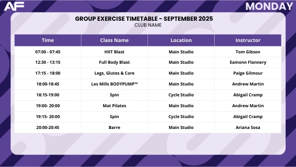 GROUP EXERCISE TIMETABLE - OCTOBER 2025