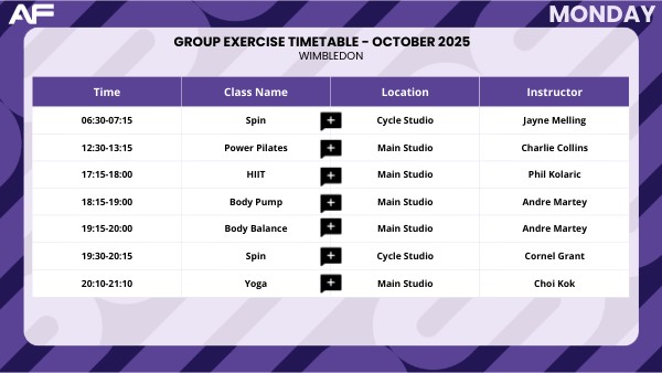 GROUP EXERCISE TIMETABLE - OCTOBER 2025