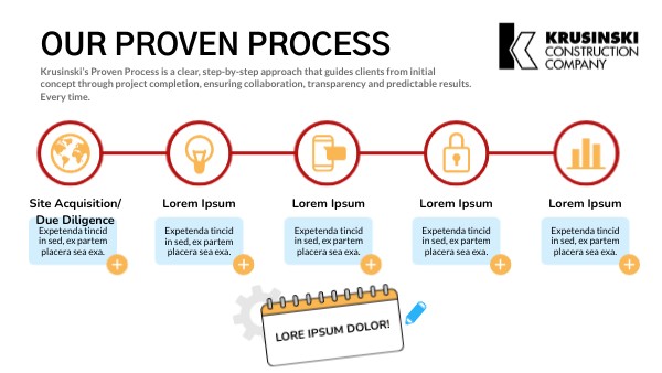 Krusinski’s Proven Process is a clear, step-by-step approach that guides clients from initial concept through project completion, ensuring collaboration, transparency and predictable results. Every time.