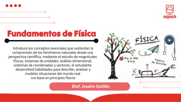 Introduce los conceptos esenciales que sustentan lacomprensión de los fenómenos naturales desde una perspectiva científica, mediante el estudio de magnitudes físicas, sistemas de unidades, análisis dimensional, sistemas de coordenadas y vectores, el estudiante desarrollará habilidades para describir, analizar y modelar situaciones del mundo real con base en principios físicos