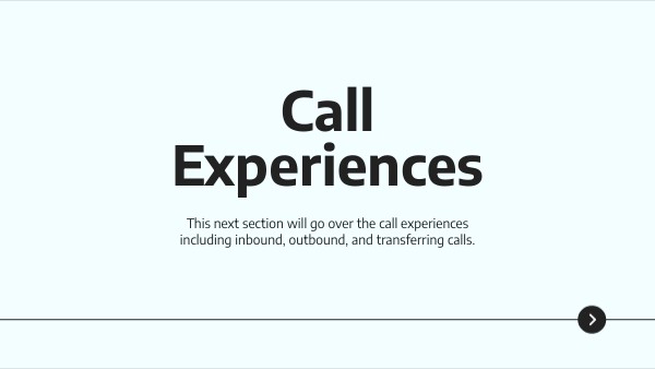 This next section will go over the call experiences including inbound, outbound, and transferring calls.