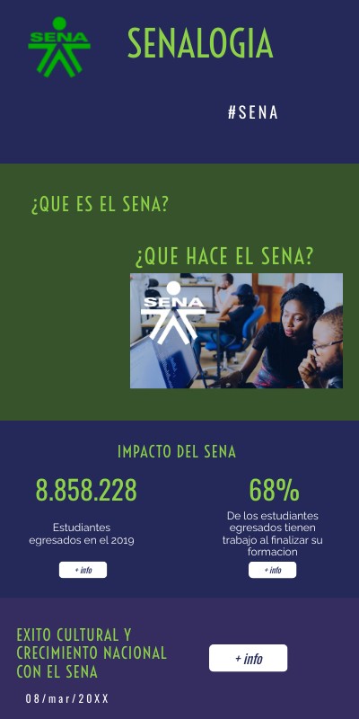 - El SENA es una entidad pública que impulsa el desarrollo social y productivo de Colombia, formando talento humano calificado en alianza con el gobierno, los empresarios y los trabajadores.