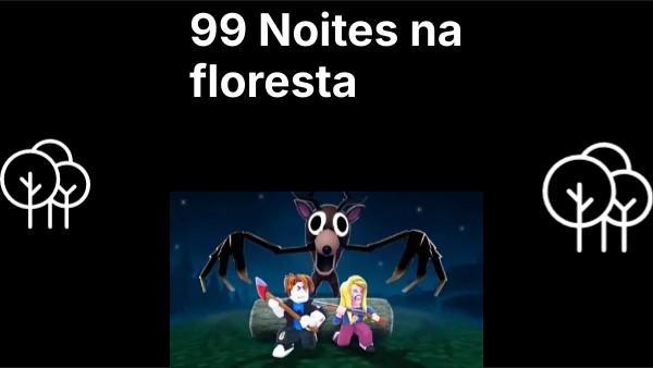 99 Noites Na Floresta é um jogo do roblox que tem ficado muito popular ultimamente. No jogo tu tens de manter a fogueira acesa, resgatar 4 crianças desaparecidas e sobreviver ao veado e outros monstros à noite. NOTA: O veado não gosta de luz!