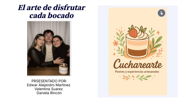 Cucharearte se consolida como una propuesta innovadora que responde a las tendencias actuales del mercado, ofreciendo productos artesanales y saludables adaptados al gusto del público joven de Tunja. * Los resultados de los sondeos muestran que el público valora el sabor, la presentación y la sostenibilidad, lo que permite enfocar las estrategias en fortalecer la experiencia del cliente y la imagen de marca. * El proyecto demuestra viabilidad y potencial de crecimiento, ya que combina una oferta diferenciada con un mercado dispuesto a consumir productos auténticos en un entorno acogedor y con identidad loca