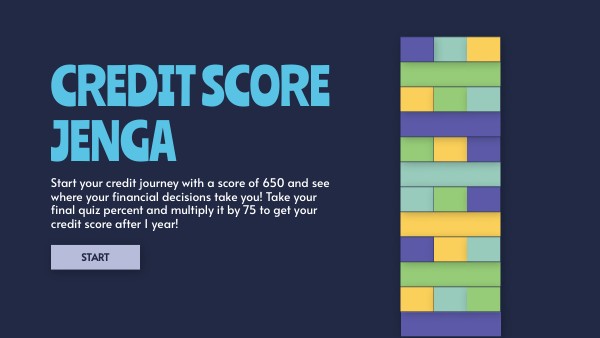 Start your credit journey with a score of 650 and see where your financial decisions take you! Take your final quiz percent and multiply it by 75 to get your credit score after 1 year!