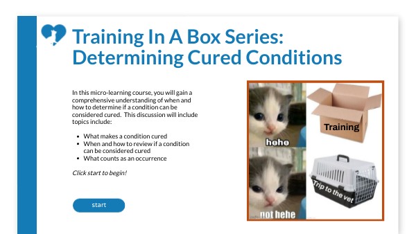 Training In A Box Series: Cured Conditions