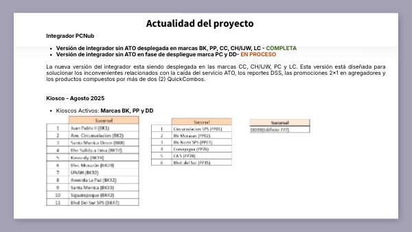 - Kioscos Activos: Marcas BK, PP y DD
