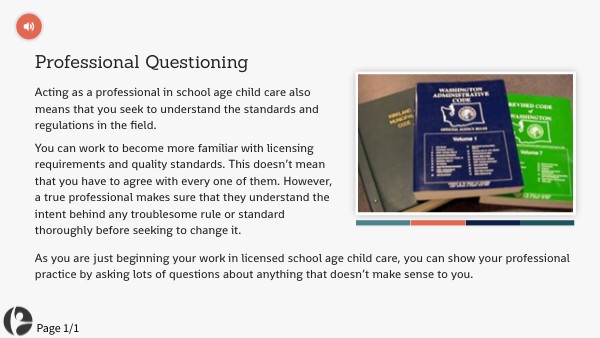 Como está comenzando su trabajo en un programa con licencia para el cuidado de niños en edad escolar, puede demostrar su profesionalismo haciendo muchas preguntas sobre cualquier cosa que no le resulte clara.