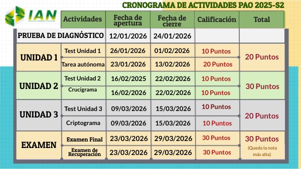 CRONOGRAMA DE ACTIVIDADES PAO 2025-S2
