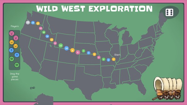 West ward we go! Roll the dice to see how many spaces to move!