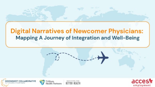 The journey of international medical graduates (IMGs) in Canada involves both challenges and successes. The Digital Narratives of Newcomer Physicians (DiNNP) project is a collaboration between ACCES Employment and The Moonshot Collaborative for Translational Health Equity at the Institute for Better Health, Trillium Health Partners. This project shares the lived experiences of IMGs who have pursued medical licensure or alternative healthcare careers upon migration and resettlement in Canada. DiNNP highlights the diverse pathways and settlement experiences of eight IMGs. These digital narrative timelines capture insights into their professional, personal, and future journeys aiming to inform, inspire, and support others navigating similar transitions.