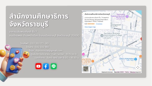 อาคารเฉลิมพระเกียรติ ชั้น 7 ถนนไกรเพชร ตำบลหน้าเมือง อำเภอเมืองราชบุรี จังหวัดราชบุรี 70000