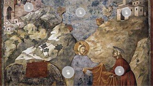 Il Il mendicante sta ricevendo il mantello da San Francesco. Lui è un nobile caduto in disgrazia, quindi è povero.