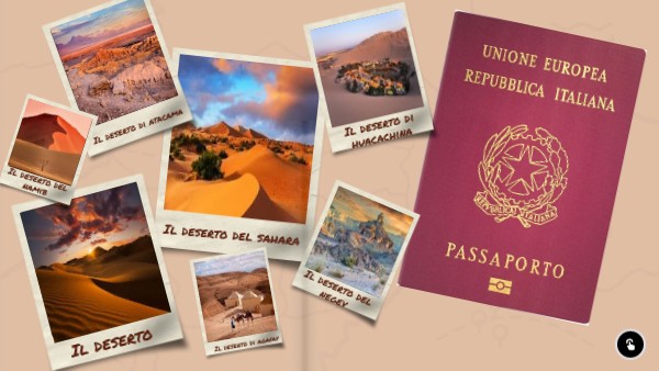 Un deserto è una vasta area arida con precipitazioni inferiori a 50 mm annui e scarsa vegetazione. Esistono diversi tipi di deserti, inclusi quelli caldi come il Sahara, noti per la forte escursione termica tra giorno e notte, e quelli freddi come le regioni polari. I paesaggi variano, con dune di sabbia, zone rocciose e montuose. Nonostante le condizioni estreme, i deserti ospitano una ricca biodiversità, con piante e animali che hanno sviluppato adattamenti speciali per sopravvivere. La loro formazione è spesso legata a zone ad alta pressione atmosferica che impediscono le piogge o alla lontananza dal mare e alle correnti oceaniche. Nel complesso, i deserti coprono circa un decimo della superficie terrestre.