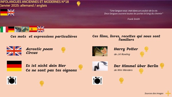 INFOLANGUES ANCIENNES ET MODERNES N°18 Janvier 2025: allemand / anglais