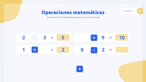 Arrastra las cifras/símbolos/operaciones a la posición correcta