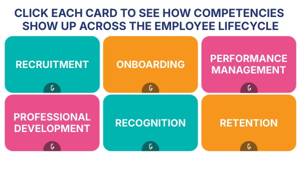 CLICK EACH CARD TO SEE HOW COMPETENCIES SHOW UP ACROSS THE EMPLOYEE LIFECYCLE