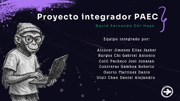Equipo integrado por:Alcocer Jimenez Elias Jasher Burgos Chi Gabriel Antonio Colli Pacheco Joel Jonatan Contreras Gamboa Roberto Osorio Martinez Dante Utzil Chan Daniel Alejandro