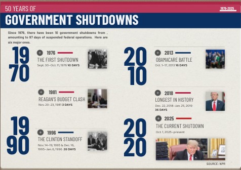 The ongoing shutdown began after Congress failed to pass a budget before the fiscal deadline. More than 620,000 federal employees are furloughed, and agencies including the FAA and USDA have suspended many operations. Local economies near Washington, D.C., such as McLean, are already feeling the financial ripple effects as paychecks stop and services freeze.