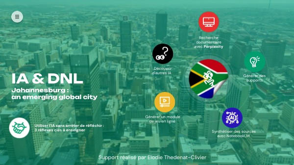 EXEMPLE DE PROMPT : Agis en tant que professeur de DNL Histoire-Géographie en Anglais en classe de Terminale (niveau en anglais = B2). Tu vas réaliser une activité pour le chapitre de Terminale intitulé : Johannesburg: an emerging global cityAxis 1 : The changes of an emerging global/world city What makes Johannesburg an emerging world city ? Durée de l'activité : 20 minutes Temps de correction collégiale : 15 à 20 minutes maximum Les documents étudiés seront les mêmes pour tous les élèves, sources authentiques mais il faudra proposer 2 ou 3 niveaux de difficultés dans les questionnements. Avant de répondre, pose moi toutes les questions utiles pour améliorer ta réponse.