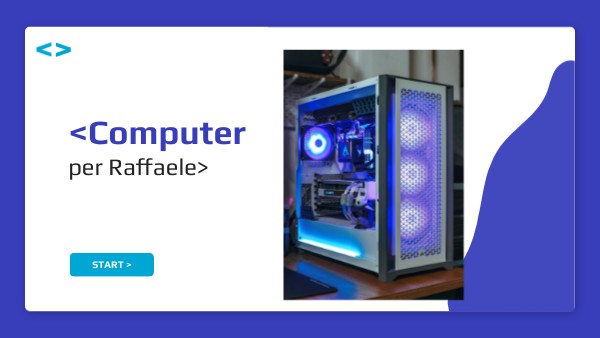 Come prima proposta, propongo a Raffaele un pc da gaming fisso a soli 499,90€ con un monitor da 24" e il case gaming con vetro temperato sicuro e ultra resistente. Illuminazione led RGB frontale,ventola led RGB posteriore. - memoria RAM 16GB DDR3 - SSD 480GB 2.5" SATA - USB 2.0 e 3.0.Compreso nel prezzo ci sono un mouse, una tastiera e delle cuffie RGB