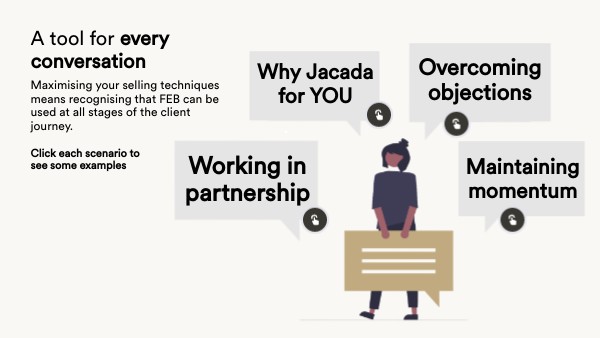 Maximising your selling techniques means recognising that FEB can be used at all stages of the client journey.
